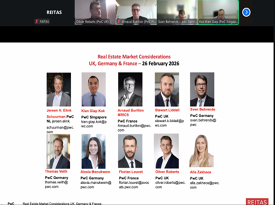 PwC-REITAS Webinar: Real Estate Market Considerations – UK, Germany & France – 26 Feb 2026